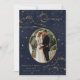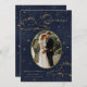 Convite de casamento celestial místico com uma bela lua crescente dourada, estrelas e nuvens em um fundo azul meia-noite, combinado com fontes elegantes para suas informações personalizadas. Este convite vem em diferentes cores de fundo, borgonha e preto, que você pode encontrar em nossa loja.
