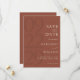 Personalize facilmente os cartões de salva data do seu casamento com este modelo editável. Características: design de tipografia elegante e minimalista em cor terracota.