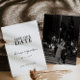O cartão de "Save the Date" para casamento preto e branco minimalista exala elegância e simplicidade, estabelecendo o tom para uma celebração sofisticada. Este cartão apresenta um design elegante e refinado, destacando a beleza encontrada na simplicidade.