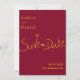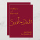 Este elegante casamento burgundy e dourado, salvo a data, é perfeito para um casamento moderno. O simples design apresenta uma elegante caligrafia de ouro num fundo burgundy.
