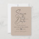 Um Simples Casamento De Cor De bege Sólido Mínimo Salva As Cartões De Data. Este design moderno, porém clássico, é minimalista e elegante com uma simples cor sólida e um belo texto de assinatura de caligrafia. Mostrada na entrada da tapeçaria do Taupe Beige. Também apresenta uma fotografia personalizada opcional do casal no verso. Ou simplesmente ocultar a camada para ter um fundo sólido. Para ver mais, procure as coleções de casamento de 2022 da Chic Paperie para ver todas as tendências de designs e cores de casamento para este ano.
