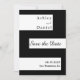Este elegante casamento preto e branco que salvou a data é perfeito para um casamento moderno. o simples design apresenta uma caligrafia negra elegante em listras brancas sobre fundo preto.