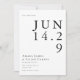 Anuncie seu grande dia com a elegância do eterno usando este moderno preto e branco salve o cartão de data. A design minimalista e a tipografia ousada criam um olhar limpo e na moda que dá o tom para a sua próxima celebração. Perfeito para casais que apreciam a simplicidade com sofisticação, este cartão garante que seus convidados marquem seus calendários com estilo.