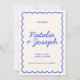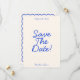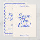 Este casamento moderno e retrô minimalista Salve a Modelo de Data é excelente para você. Se você está procurando um bonito, elegante e fácil personalização Casamento Salve a Modelo de Data. Um casamento muito elegante, simples e branco, estilo francês azul, salve a data. Que apresenta o mínimo de azul, salve a data de tipografia em negrito sobre fundo branco claro e claro. E a moldura ondulada desenhada à mão. Pegue este casamento de na moda, salve a data e faça seus convites realmente comprometidos.
