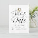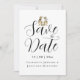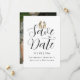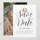 Foto de casamento moderna e elegante, "Save the Date" com tema de dinossauro caprichoso, cartão de "Save the Date" de casamento com noiva e noivo T-Rex engraçados