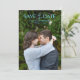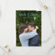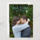 O casamento moderno salve o cartão de data com os detalhes do seu evento sobre a sua foto vertical favorita com as palavras "SAVE the DATE" em uma combinação de um roteiro elegante e fonte moderna sans serif. A parte traseira tem uma imagem adicional e um código QR opcional. Você pode remover o código QR na ferramenta de edição de design.