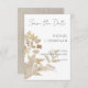 Este simples mas elegante design apresenta um buquê de canto de flores silvestres neutras, brancas e douradas. É parte da suíte de casamentos modernos Neutral Tan Wildflower criada pela imprensa simplesmente de farmácia.