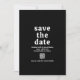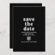 Casamento de estilo moderno salve a data com um layout simples e mínimo com seus nomes em uma fonte retrô de ranhura. Abaixo estão os detalhes do evento em uma fonte sans serif junto com seu código QR (opcional) para os convidados pesquisarem e visitarem o site para obter detalhes adicionais. O esquema de cores é preto com letras brancas. O código QR pode ser removido e as fontes/cores podem ser alteradas na ferramenta de edição de design.