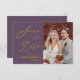 Foto Moderna De Casamento Minimalista Do Script Dourado Elegante Mauve Purple Elegante Salve O Cartão De Convite De Data. Avise sua família, amigos e colegas que você marcou uma data para sua celebração de casamento com este casamento elegante, na moda e moderno, salve o cartão de convite. Todos os textos estão pré-organizados para que você personalize fácil e rapidamente com seus próprios detalhes.