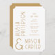 Casamento Dourado e Elegante minimalista Salve os Convites de Data contém texto simples e elegante em ouro, em fundo branco. Projetado para você pelo Evco Studio www.zazzle.com/store/evcostudio