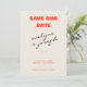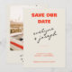 Este casamento moderno e retrô minimalista Salve a Modelo de Data é excelente para você. Se você está procurando um bonito, elegante e fácil personalização Casamento Salve o Modelo de Data. Um elegante e simples creme pálido e pálido, e uma foto de guião cor-de-rosa, salve a data. Que apresenta cor de laranja mínima, salve nossa data, tipografia ousada em fundo cremoso e liso. Com noivado personalizável ou apenas uma foto casual do noivo e da noiva no verso. Pegue este casamento de na moda, salve a data e faça seus convites realmente comprometidos.