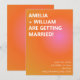 Este aviso de casamento anuncia o seu grande dia com um gradiente ousado de pôr do sol de verão em laranja e rosa. A mistura de cores quentes e brilhantes captura a sensação de celebrações durante a hora dourada e encontros alegres à noite. Projetado para casais modernos que planejam uma cerimônia de verão vibrante, define o tom para um dia de casamento elegante e confiante. É uma maneira brilhante e memorável de compartilhar a data e criar expectativa com os convidados.