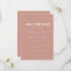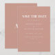 Um simples e elegante cartão de salvar a data do casamento rosa empoeirado, projetado com tipografia branca simples. Personalize com as informações do seu casamento futuro na frente e suas iniciais no verso.