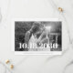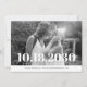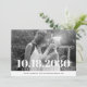 Cartão de "Save the Date" de casamento 5x7 horizontal com um design de tipografia simples e moderno com sobreposição de data em fonte serifada negrito grande e moderna sobre sua foto que você carrega no modelo e digita seus nomes e local e data do casamento para um design rápido e fácil que funcionará com qualquer tema que você escolher posteriormente. As cores de fundo e as fontes são editáveis para combinar com seu esquema de cores, e você pode adicionar mais informações ou fotos adicionais no verso.