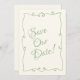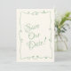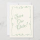 Este casamento moderno e retrô minimalista Salve a Modelo de Data é excelente para você. Se você estiver procurando um Modelo de Data de Casamento bonito, elegante e fácil de personalizar. Um modelo muito elegante e único. Que apresenta o beige leitoso antigo no chão. Com uma linguagem esbranquiçada, manuscrita, o texto verde da casa da moeda e a caligrafia escrita à mão. Pegue este casamento de na moda, salve a data e faça seus convites realmente comprometidos.