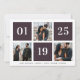 Anuncie os vossos núpcias com estas cartões salve a data chic com três das vossas fotografias quadradas favoritas e a data do vosso casamento num esquema reticulado com quadrados de ameixa alternada. "Save the Date" (Salvar a data) aparece abaixo com seus nomes e local do casamento.