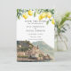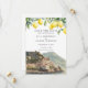Este convite de save the date de casamento elegante, com limões aquarela e uma cena da costa Amalfi Itália pode ser personalizado com suas informações em tipografia sofisticada. Criado por Thisisnotme©