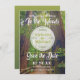 Junte-se ao casal que será casado no bosque com este convite para Salvar a Data. Apresenta um olhar antigo de cartão postal com árvores de madeira vermelha texturizadas falsas na floresta com tons de verde. Fundo texturizado (faux).