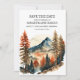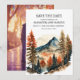 Cartão de Save the Date de casamento na montanha com cores laranja queimado e outono e aventura. Personalizado com sua foto no verso. Compre cópias impressas ou encomende digital para compartilhar com amigos e familiares por e-mail ou nas redes sociais.