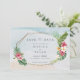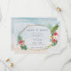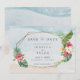 Peça aos familiares e amigos que reservem a data para o seu casamento na praia com este save the date de casamento na praia com flores tropicais. Seu design deslumbrante captura a beleza da praia com um fundo suave de aquarela de areia e oceano com uma borda de flores e folhas tropicais. Perfeito para um casamento de destino na praia!