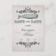 ~Anúncio de Save the Date de Estilo Vitoriano Antigo de Praia de Baleias. Apresenta tons de preto, cinza, branco e aqua com um fundo de estilo antigo na frente.