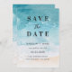 Casamento na Praia do Oceano de Verão Moderno Salve a data apresenta uma cativante ambientação costeira à beira da praia, com vista para o vasto oceano. Este destino de praia idílico é perfeito para o seu dia especial. Celebre o seu amor com uma cerimônia de tirar o fôlego em meio ao som calmante das ondas.
