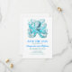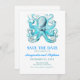 Cartões salve a data brancos de praia com desenho de polvo náutico turquesa. Maravilhoso guarde o cartão de data para casamento elegante na praia, casamento costeiro, casamento de destino tropical. Amarre-o com qualquer fita colorido, ou corda pequena, e você terá uma data perfeita.
