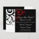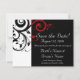 Salve o cartão de data para combinar o nosso preto e branco com o convite de casamento da espiral reversa de sotaque vermelho, com o fundo de folha de rolagem gráfica em negrito. Personalize online com seus detalhes de casamento.