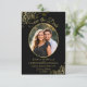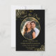 Estas belas cartas são uma forma excelente de deixar seus amigos e família saberem salvar a data do seu próximo casamento. Eles apresentam um design preto e dourado com sua foto em um quadro em forma de oval cercado por ouros de folhas falsas e espirais, e a inscrição no roteiro do rico com seus nomes, data do casamento e local. O verso tem um gráfico bonito de "lápis nós in" com espaço para uma nota que pode incluir um site onde seus convidados podem obter mais informações.