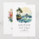 Capture a essência de um casamento dos sonhos no Havaí com este incrível cartão de save the date de destino. Com uma cena de praia tropical em aquarela na frente e flores tropicais vibrantes com um código QR no verso, este design combina perfeitamente elegância e praticidade. Fácil de personalizar com os detalhes do seu casamento, este cartão define o tom perfeito para a sua inesquecível celebração na ilha.