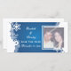 Casamento no inverno branco azul Snowflake Salve o cartão com fotos Date, apresentando uma borda branca de flocos de neve sobre fundo azul brilhante. Uma escolha perfeita para os casamentos de dezembro de inverno.