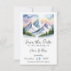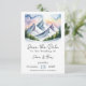 Celebre seu dia especial com este elegante design de montanha de aquarela, com picos de neve, céu pastel macio e árvores cada vez verdes. Perfeito para casamentos no inverno rústicos, ao ar livre, ou ao ar livre, esta trabalho de arte traz um toque de beleza natural e romance sereno para seus convites, salvas as as datas, e papelaria de casamento. Crie uma primeira impressão inesquecível que reflete o seu amor pelo excelente ao ar livre e pela elegância do eterno.