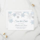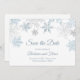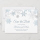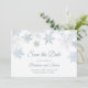 Casamento no inverno elegante, salve o cartão com flocos de neve azul prateado. Perfeito para casamentos de Natal e outros eventos sazonais e de férias.