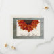Um casamento outono salva a data que apresenta uma imagem em frente a um girassol de laranja a partir do topo do retângulo enquadrado pela imagem de madeira de casca rija. Personalize o texto na frente e atrás. Procure por convites correspondentes na Paperie da Jill. com