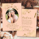 Estas belas cartas são uma forma excelente de deixar seus amigos e família saberem salvar a data do seu próximo casamento. Eles apresentam uma cor de laranja claro ou de pêssego e design de ouro com sua foto em um quadro em forma de oval cercado por ouros e espirais. Há uma inscrição em rico com espaço para seus nomes, data do casamento e local. O verso tem um gráfico bonito de "lápis nós in" com espaço para uma nota que pode incluir um site onde seus convidados podem obter mais informações.