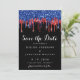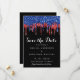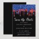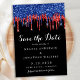 Convide seus amigos e família para comemorar seu dia especial com esses relíquios negros, vermelhos e azuis pingam patrióticos para salvar a data dos convites de casamento. Personalize com seus nomes e todas as suas informações de casamento. Esta coleção de casamentos tematizada da bandeira americana será uma favorita entre todos os militares, veteranos e forças armadas. Visite nossa coleção patriótica de casamento para convites para casamento vermelho branco e azul, favores de casamento, suprimentos de festa. COPYRIGHT © 2020 Judy Burrows, Black Dog Art - Todos Os Direitos Reservados. Elegante Red Blue Glitter Derruba Casamento Patriótico Salvar a Data