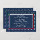 Parte da Coleção de Casamentos Militares Patriótica que apresenta um conjunto completo de convites. Padrões vermelhos brancos e azuis com bordas estelares fornecem uma aparência elegante e instantânea. Ideal para locais de casamento patrióticos e/ou militares.