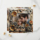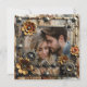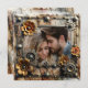 Legal e único casamento Salve os cartões de data. O Steampunk foi criado com engrenagens de ouro e metal prateado, flores e um fundo de madeira curada. Carregue a sua imagem favorita na área personalizar e edite o texto no verso para adicionar as suas próprias informações de casamento.