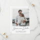 Na frente, este simples e elegante casamento fotográfico moderno salve a data em que o modelo de cartão plano apresenta os seus primeiros nomes, data e local do casamento sob a sua foto e uma única mensagem 'Salve nossa Data' em letra manuscrita que primeiro escrevemos à mão e depois adaptamos para este cartão. O texto 'Salvar nossa Data' está em preto padrão e seus detalhes abaixo são um preto ligeiramente suavizado. Você pode mudar a cor do texto dos nomes para ouro ou outra cor, ou alterar a cor do outro texto. O elemento design 'Salvar nossa Data' não pode ser alterado, pois é uma imagem. Mas você pode mudar a cor, o tamanho ou a fonte de qualquer outro texto em ambos os lados. A parte traseira da placa inclui espaço para uma segunda foto e sua mensagem personalizada na parte traseira A cor de texto padrão do texto na parte traseira é preta. Você pode optar por excluir algo ou alterar um campo de texto na frente ou de volta para uma mensagem totalmente diferente. O plano de fundo em ambos os lados é definido como transparente para permitir que a cor do papel sirva simplesmente como tom base, mas você pode editá-lo e escolher uma cor específica em um ou em ambos os lados, se preferir. Adicionamos alguns exemplos de texto no verso para que você edite de acordo com suas necessidades. Em vez de digitar o seu próprio endereço no website do casamento, você pode decidir excluir nosso endereço de exemplo no site e a linha acima dele sem substituir essas partes do design. E em vez de editar nosso exemplo de texto no verso com sua própria mensagem, você pode simplesmente excluir todo esse texto e deixar o verso do vazio do cartão, exceto sua foto, talvez para escrever sua própria mensagem mais tarde, ou para enviar sem nenhum texto no verso. Você também pode excluir nossa foto de amostra sem substituí-la se não quiser adicionar uma segunda foto além da foto na frente. O tipo de papel padrão, matte, tem um calor suave e resiste a manobras, então é uma escolha excelente para escrevendo sua própria mensagem. Você pode editar isso e escolher semirbrilho ou fazer upgrade para outro tipo de papel. Em qualquer caso, lembre-se de apagar todo o nosso texto de amostra em ambos os lados, bem como as nossas fotografias de exemplo. Personalize este na moda moderno casamento de duas fotos, salve o modelo de cartão simples de data com as ferramentas intuitivas de edição, suas fotos favoritas e sua inspiração e torne-o exclusivamente seu!