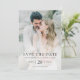 Esta simples e na moda, foto moderna salve a data do cartão de casamento contém um texto preto elegante com uma mensagem e espaço 'SAVE THE DATE' para seus nomes, data e localidade de casamento abaixo dela. A forma padrão da placa é os cantos nítidos padrão, mas esta design também parece excelente com cantos arredondados, então tente ambos no modo de edição e veja o que atinge seu rico! No verso, definimos o fundo como transparente para deixar a cor do papel simplesmente servir como o tom base. Mas você pode editar isso e escolher uma cor de fundo específica se preferir. Você também pode editar o texto de acordo com as suas necessidades. Talvez você queira excluir um campo de texto que não precisa ou alterar a cor ou a fonte de algum texto. Escolhemos preto para o texto atrás. Mas você pode escolher outra cor ou alterar o tamanho da fonte ou do texto. Use as ferramentas intuitivas de design, sua foto favorita e sua inspiração para fazer com que esse casamento de na moda salve o cartão de data exclusivamente seu. E por favor, verifique nossa loja para uma seleção de convidados elegantes modernos para salvar a data, incluindo uma versão deste design com texto branco nítido na frente!