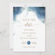 Anuncie sua data de casamento com este elegante e celestial tema Salve a data. Manchas deliciosas de cor azul, marinho, turquesa, roxo, magenta e dourada, criando um fundo celeste deslumbrante com estrelas delicadas. Elegante para trás com as mesmas manchas celestiais de aquarela da frente e elegante Guarde a mensagem de data em uma mistura de caligrafia moderna manuscrita e tipografia de blocos com a data do evento. Parte de nossa coleção "Jardim Místico" com uma variedade de produtos de coordenação disponíveis.