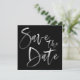 Caligrafia de Pincel Manuscrita Moderna Manuscrita Script Casamento Preto Salve o Convite de Data. Um moderno e contemporâneo Salve o modelo de Datas com Escrita em Pincel de Caligrafia branca sobre fundo preto e nomes e data de casamento no verso. Personalize-o com as suas próprias informações de casamento e altere a cor do fundo, se preferir. Um anúncio de casamento contemporâneo para casais modernos. Este Design Salvar a Data também está disponível com texto preto em fundo branco no meu compro.