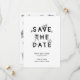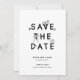 Este cartão Save the Date apresenta um divertido design preto-e-branco com ícones de temas de casamento integrados à inscrição. Destaca os nomes do casal e a data do seu casamento, num formato moderno e limpo. Simples e na moda com um toque divertido.
