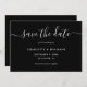 Casamento preto e branco personalizado moderno salve os cartões de data com uma fonte moderna. Itens correspondentes disponíveis. Solicitações personalizadas bem-vindas.