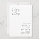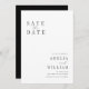 simples casamento de design preto e branco salve o cartão de data com roteiro preto.