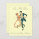 Vintage, 1920, Themed Wedding, salva a data. Imagem de um homem e uma mulher dançando alegremente. Cartões salve a data totalmente personalizáveis completos com envelopes.