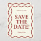 Este casamento moderno e retrô minimalista Salve a Modelo de Data é excelente para você. Se você está procurando por um bonito, elegante e fácil personalização Casamento Salve a Modelo de Data. Um elegante e simples marfim vermelho ousado branco, salve o convite de data. O que apresenta um mínimo de vermelho profundo, salve a data bold typografia em dentro de fundo leitoso claro e claro com uma moldura ondulada. Pegue este casamento de na moda, salve a data e faça seus convites realmente comprometidos.