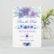 Um arranjo floral sofisticado, com flores roxas e azuis pintadas à mão, com folhagem verde macia, desenhado num estilo de aquarela delicada. Este esquema versátil funciona lindamente para papelaria de casamento, cartazes de recepção, menus, cartões guardados e notas de obrigado. A vibrante e elegante paleta de cores combina tons de ametista, índio, safira e eucalipto verdes, fazer perfeito para celebrações modernas com um toque romântico e artístico.