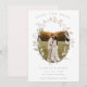 Faça o tom do seu casamento romântico com esta foto floral, salve o anúncio da data. Sua foto de noivado favorita está cercada por uma delicada camada de aquarela oval de flores escamoteadas e folhas verdes. Personalize com seus detalhes de casamento. O reverso está em cor-de-rosa claro e robusto.