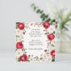 Este convite de casamento romântico combina a elegância das rosas vermelhas e rosadas com delicadas flores de lírio-do-vale em um fundo marfim, perfeito para um tema de casamento clássico